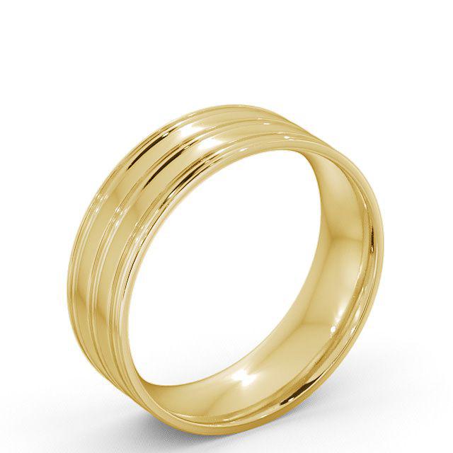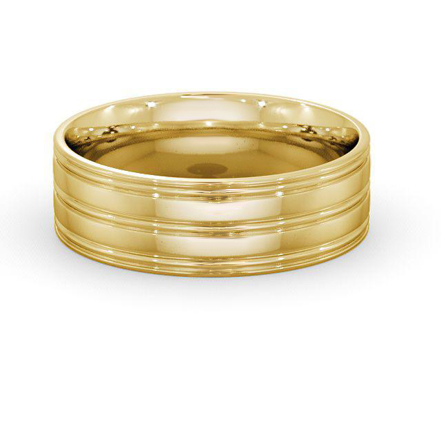 Mens Treble Grooved Flat Court Wedding Ring 9K Yellow Gold | Eldana