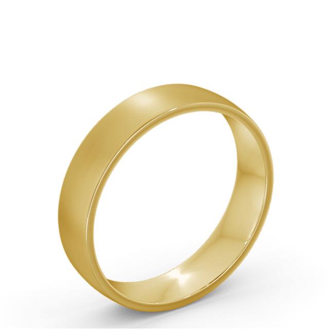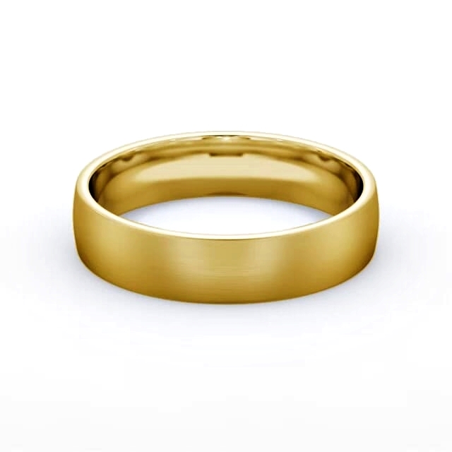 Flat Side Court men's plain wedding ring in 18K Yellow Gold. Perfect combination of durability and masculinity, this men's wedding ring features a court inner and outer surface and flat sides with a brushed effect finish. This ring is available in a range of metal options and your choice of natural or lab grown diamonds. We offer a free design service for any customised changes that you may require.