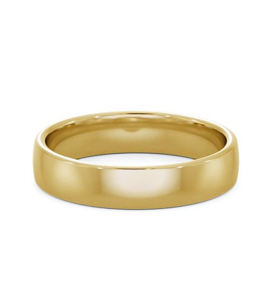 Flat men's plain wedding ring in 9K Yellow Gold. Perfect as a classic wedding band, this ring features a flat shape combined with a polished finish. The ring is available in a range of widths, depths, and metal options. We offer a free design service for any customised changes that you may require.