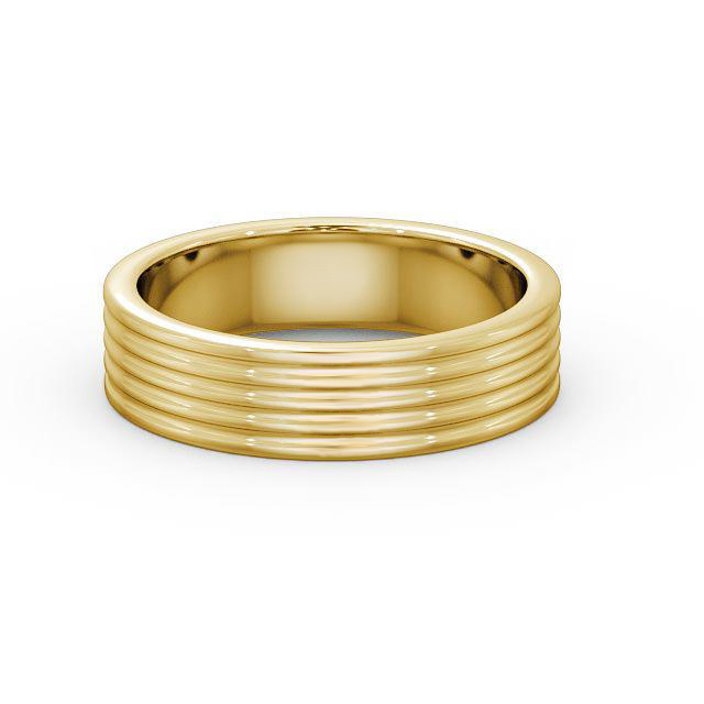 Jamal men's wedding ring in 9K Yellow Gold. Always in style, this handsome wedding ring features multiple grooved pattern all around the polished band. The ring is available in a range of widths, depths and metal options. We offer a free design service for any customised changes that you may require.