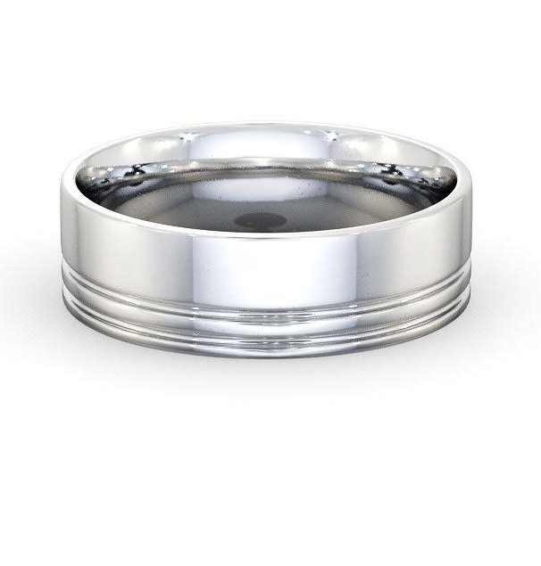Mens Step Flat Profile Princess with Matt Finish Ring 18K White Gold | Dunne (Matt)