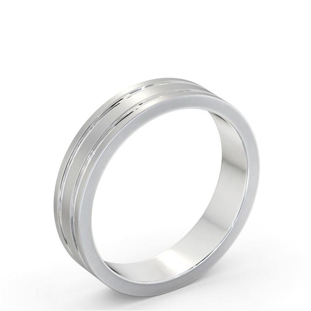 Mens Flat Profile Double Groove with Matt Finish Ring 18K White Gold | Flat Double Grooved (Matt)
