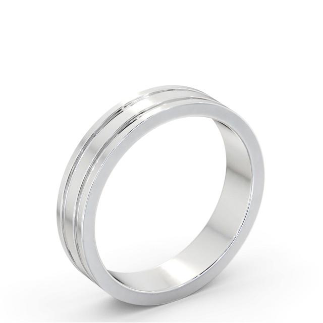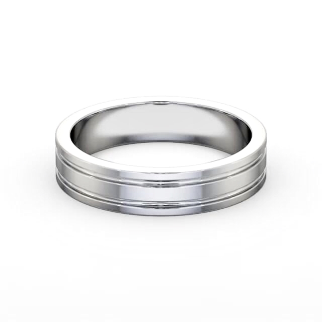 Mens Flat Profile Double Groove Wedding Ring 18K White Gold | Flat Double Grooved