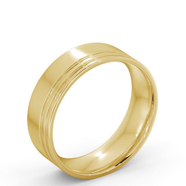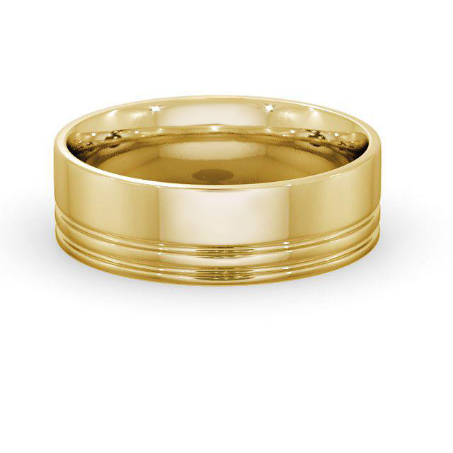 Mens Flat Court Double Groove Wedding Ring 18K Yellow Gold | Flat Court Double Groove