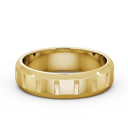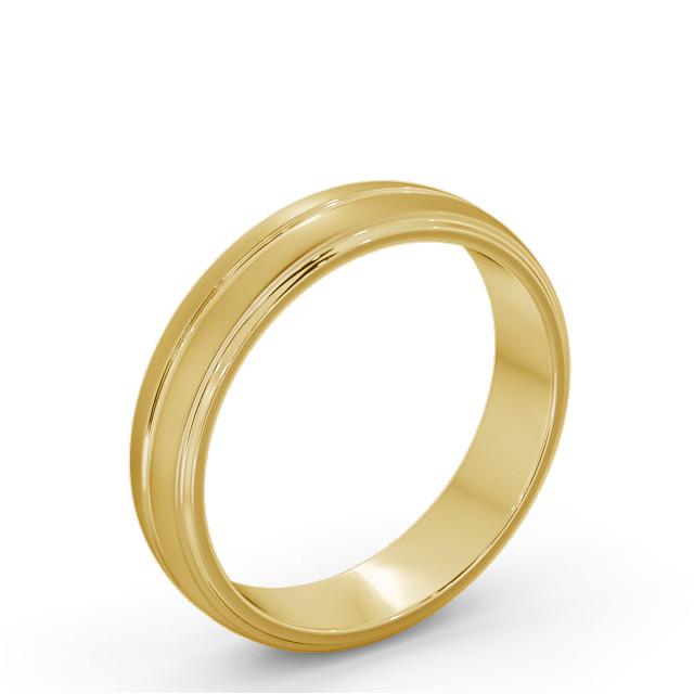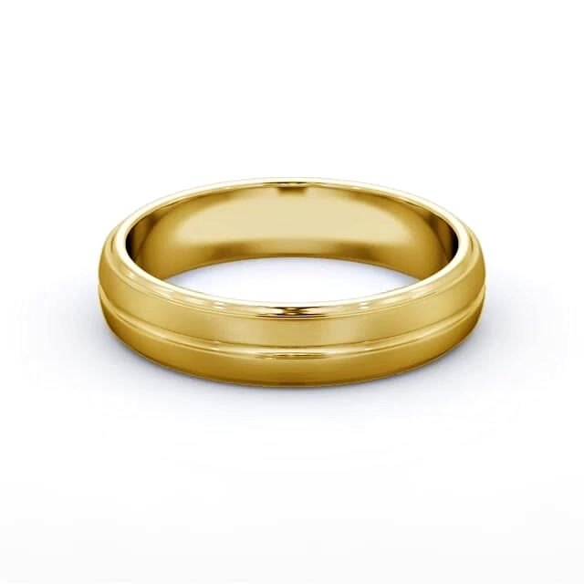 Kalea men's wedding ring in 18K Yellow Gold. This domed shaped men's wedding ring features a single grooved pattern and a brushed effect finish. Gleaming with polished finish this ring has a flat inner surface. The ring is available in a range of widths, depths, and metal options. We offer a free design service for any customised changes that you may require.