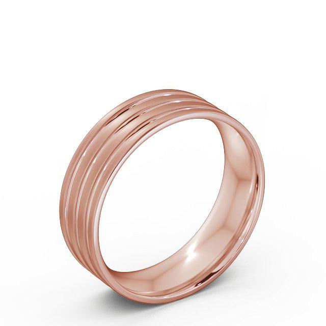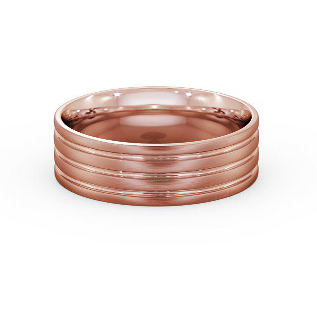 Flat Court Three Groove (Matt) men's wedding ring in 9K Rose Gold. Bold yet sophisticated, this flat wedding ring features striking multiple grooves and a brushed finish outer surface. Inside of the ring is perfectly rounded off to offer comfort fit. The ring is available in a range of widths, depths, and metal options. We offer a free design service for any customised changes that you may require.