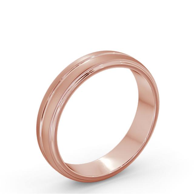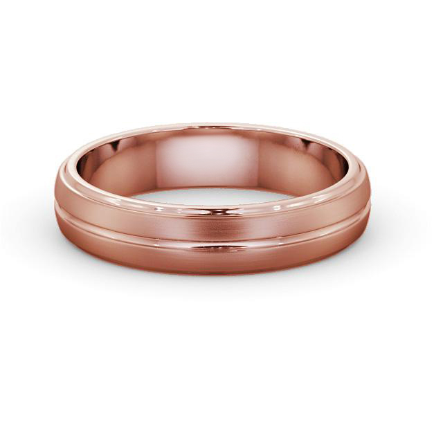 Kalea men's wedding ring in 9K Rose Gold. This domed shaped men's wedding ring features a single grooved pattern and a brushed effect finish. Gleaming with polished finish this ring has a flat inner surface. The ring is available in a range of widths, depths, and metal options. We offer a free design service for any customised changes that you may require.