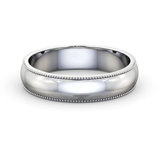 D-Shape With Grain men's wedding ring in 9K White Gold. Modern and elegant, this wedding ring features a traditional domed shaped profile and striking milgrain detailing. The ring is available in a range of widths, depths, and metal options. We offer a free design service for any customised changes that you may require.