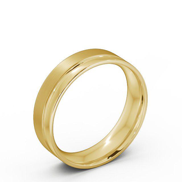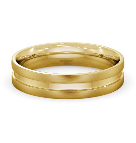 Flat Court Side Groove (Matt) men's wedding ring in 9K Yellow Gold. Contemporary yet classic, this distinctive wedding ring features attractive grooved detailing with contrasting polished and matt surface. The ring is available in a range of widths, depths, and metal options. We offer a free design service for any customised changes that you may require.