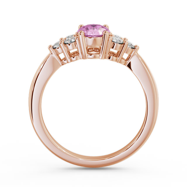 Cassidy multi stone pink sapphire and diamond 1.24ct ring in a 9K Rose Gold setting. This alluring pink sapphire and diamond ring features an impressive 1.00 Carat oval shaped pink sapphire centre gemstone flanked by three round shaped diamonds on either side with a total weight of 0.24 Carat. This ring is available in a range of metal options with AAA grade gemstone. We offer a free design service for any customised changes that you may require.