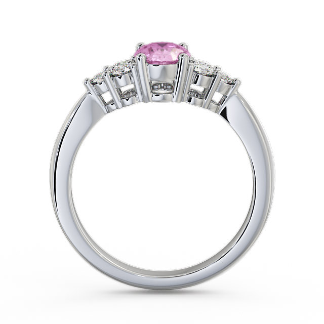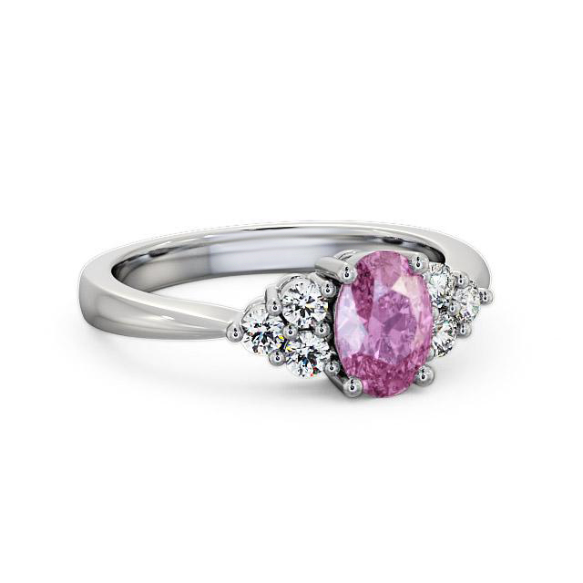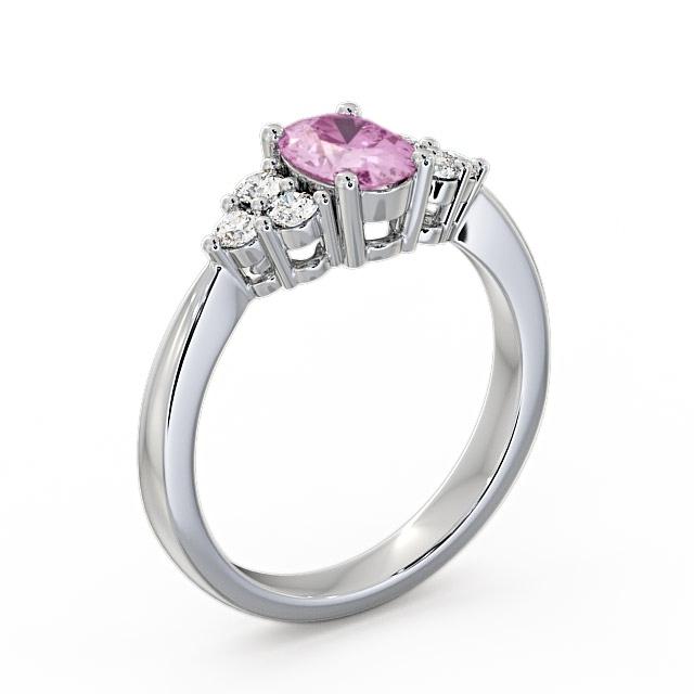 Cassidy multi stone pink sapphire and diamond 1.24ct ring in a 9K White Gold setting. This alluring pink sapphire and diamond ring features an impressive 1.00 Carat oval shaped pink sapphire centre gemstone flanked by three round shaped diamonds on either side with a total weight of 0.24 Carat. This ring is available in a range of metal options with AAA grade gemstone. We offer a free design service for any customised changes that you may require.