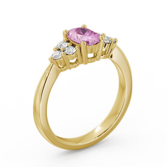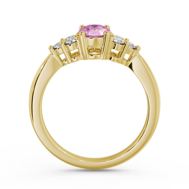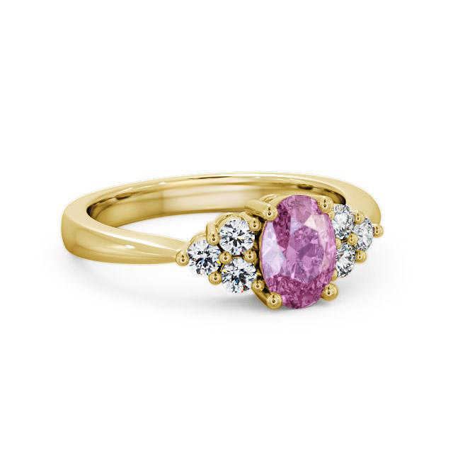Cassidy multi stone pink sapphire and diamond 1.24ct ring in a 9K Yellow Gold setting. This alluring pink sapphire and diamond ring features an impressive 1.00 Carat oval shaped pink sapphire centre gemstone flanked by three round shaped diamonds on either side with a total weight of 0.24 Carat. This ring is available in a range of metal options with AAA grade gemstone. We offer a free design service for any customised changes that you may require.
