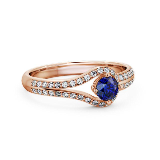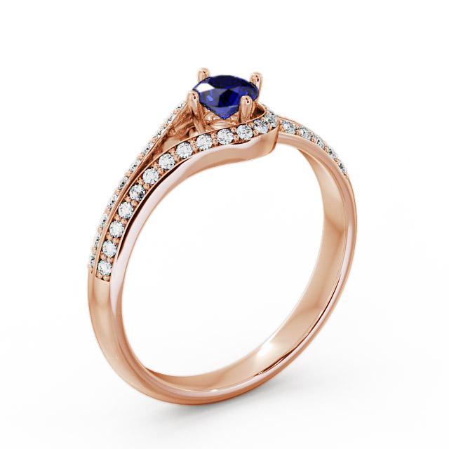 Arriana open halo blue sapphire and diamond 0.57ct ring in a 18K Rose Gold setting. This contemporary ring features a 0.34 Carat round blue sapphire gemstone, augmented by sparkling round shaped diamonds weighing 0.23 Carat in total for a mesmerising allure. This ring is available in a range of metal options with AAA grade gemstone. We offer a free design service for any customised changes that you may require.