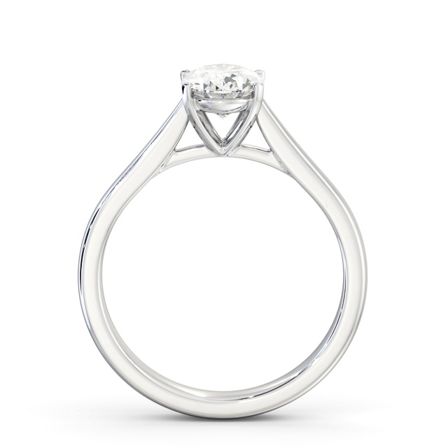 Akasha diamond engagement ring with a four claw 18K White Gold setting. Utterly feminine, an oval shaped prong set diamond at the centre is arranged on a classic tapered engagement ring with a bright polished finish. This ring is available in a range of metal options and your choice of natural or lab grown diamonds. We offer a free design service for any customised changes that you may require.