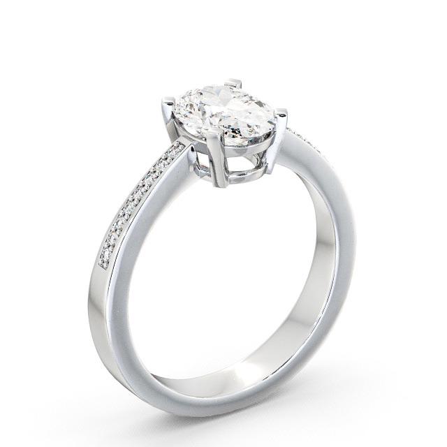 Oval Diamond Low Setting Engagement Ring 18K White Gold Solitaire | Kari