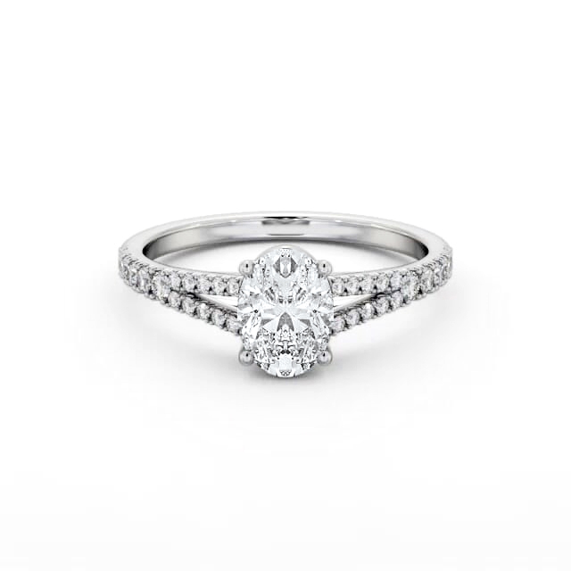 Oval Diamond Split Band Engagement Ring 9K White Gold Solitaire | Dakota