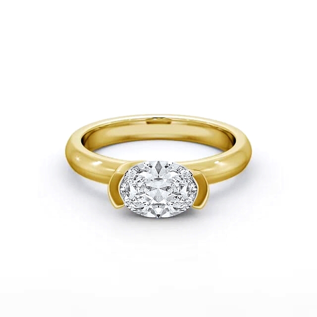 Oval Diamond Tension East West Design Ring 9K Yellow Gold Solitaire | Lilla