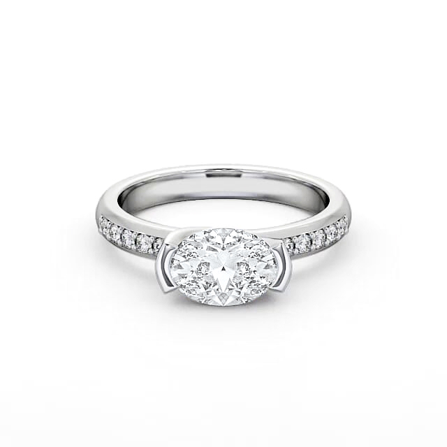 Oval Diamond East West Tension Design Ring Palladium Solitaire | Camia