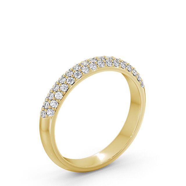 Jariah pave diamond ring in a half eternity Platinum setting. A delightful design, this half eternity ring is enhanced by three rows of beautiful pave set round diamonds. This ring is available in a range of metal options and your choice of natural or lab grown diamonds. We offer a free design service for any customised changes that you may require.