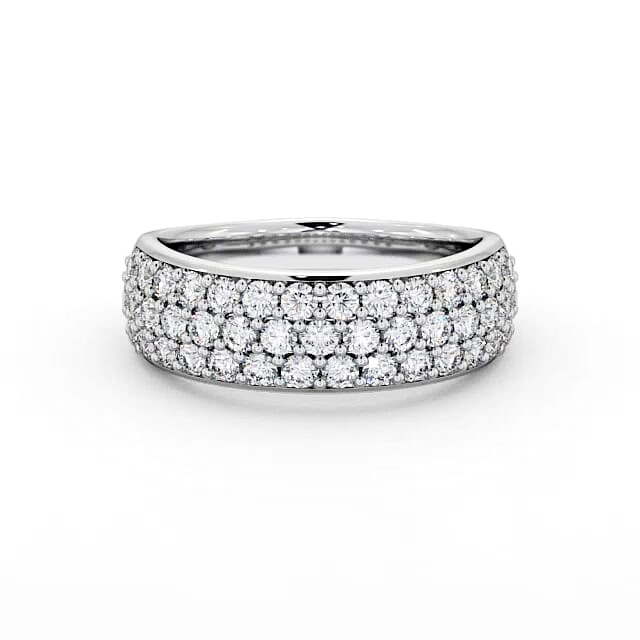 Zaya pave diamond 0.90 Carat ring in a half eternity 18K White Gold setting. Cute and elegant, this half eternity ring depicts three rows of sparkling round diamonds nestled inside pave setting. This ring is available in a range of metal options and your choice of natural or lab grown diamonds. We offer a free design service for any customised changes that you may require.
