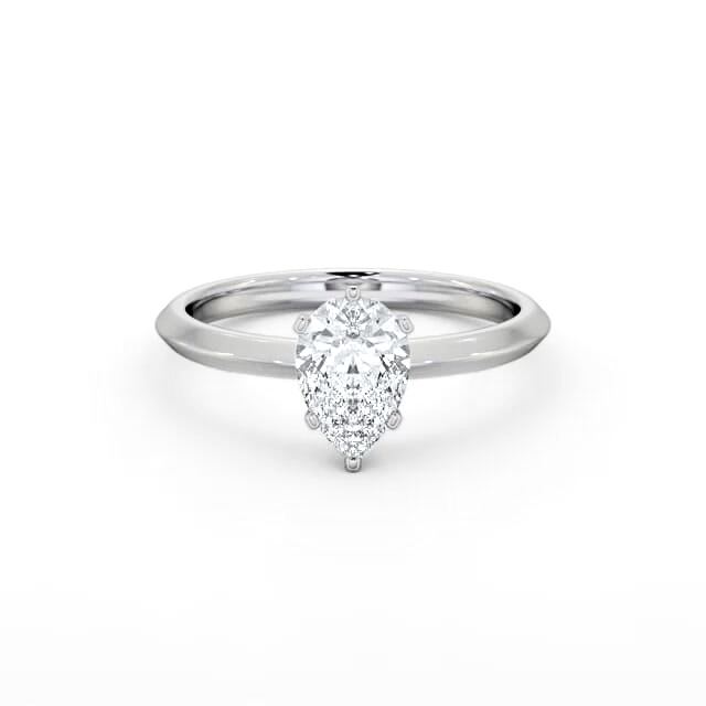 Saraya diamond engagement ring with a six claw 18K White Gold setting. Trendy pear shaped diamond effortlessly grabs attention to this attractive knife edge style engagement ring. This ring is available in a range of metal options and your choice of natural or lab grown diamonds. We offer a free design service for any customised changes that you may require.