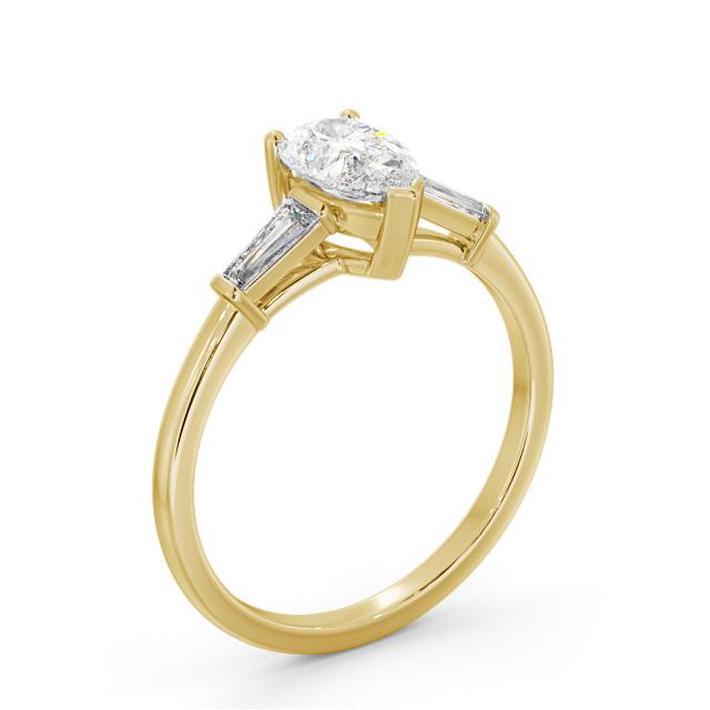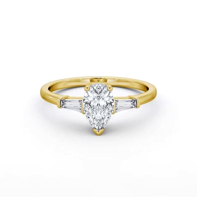 Pear Ring 18K Yellow Gold Solitaire with Tapered Baguette Side Stones | Carissa