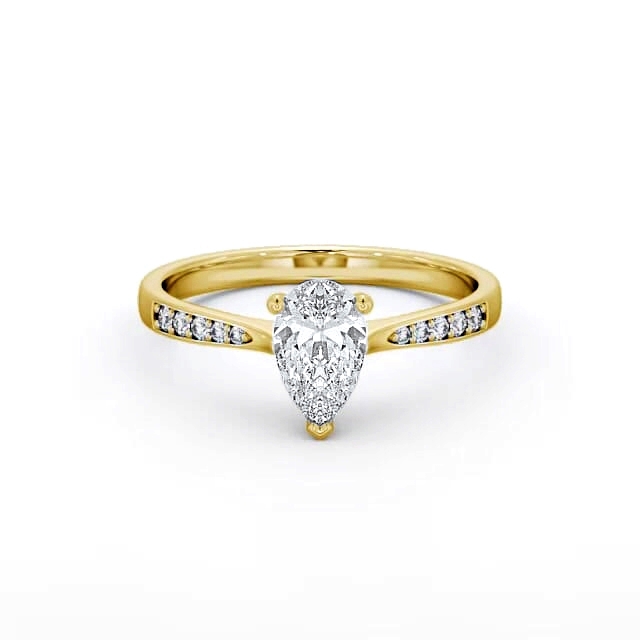 Pear Diamond Tapered Band Engagement Ring 9K Yellow Gold Solitaire | Philippa