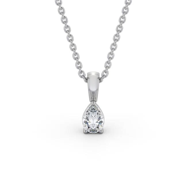 Jordin solitaire stud diamond pendant in 18K White Gold. Trendy yet classic, a charming pear shaped diamond rests gracefully amid a three-prong setting in this pendant. This pendant is available in a range of metal and chain options with your choice of natural or lab grown diamonds. We offer a free design service for any customised changes that you may require.