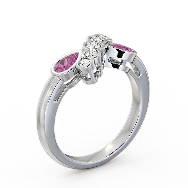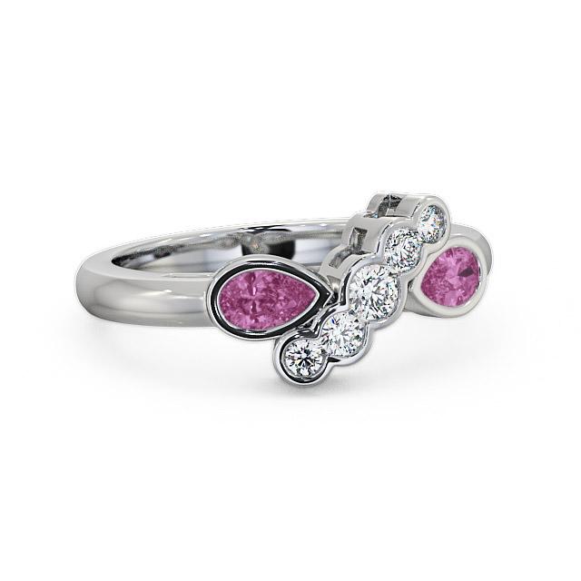 Kensington pink sapphire and diamond 1.00ct ring in a 18K White Gold setting. This stunning ring features a beautiful diagonal array of five round diamonds guarded by a dazzling pear-shaped pink sapphires on either side. Sapphires total weight is 0.40 Carat and diamonds weighs 0.20 Carat in total. This ring is available in a range of metal options with AAA grade gemstone. We offer a free design service for any customised changes that you may require.