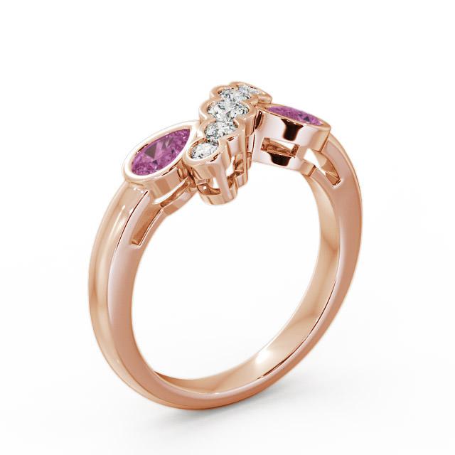 Kensington pink sapphire and diamond 1.00ct ring in a 9K Rose Gold setting. This stunning ring features a beautiful diagonal array of five round diamonds guarded by a dazzling pear-shaped pink sapphires on either side. Sapphires total weight is 0.40 Carat and diamonds weighs 0.20 Carat in total. This ring is available in a range of metal options with AAA grade gemstone. We offer a free design service for any customised changes that you may require.
