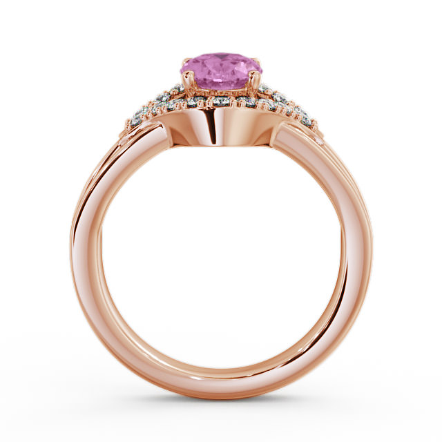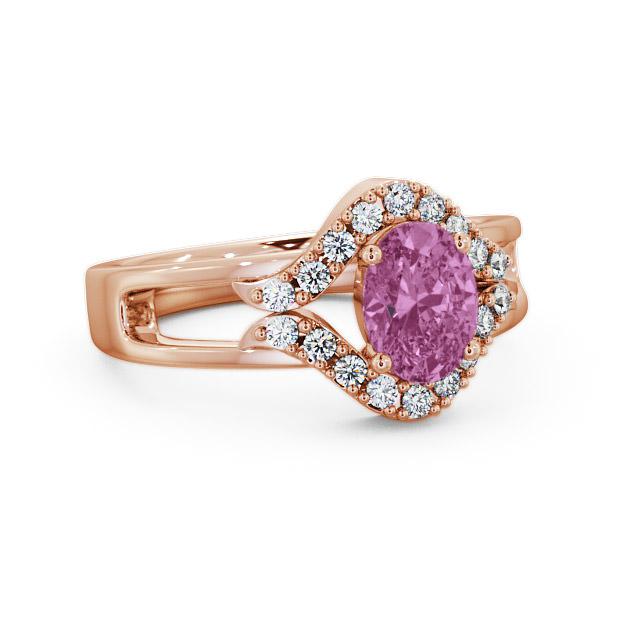 Lilibeth pink sapphire and diamond 1.18ct ring in a 18K Rose Gold setting. Defined by modern elegance, this beautiful oval shaped pink sapphire gemstone ring is augmented by a halo of sparkling round diamonds. Sapphire weighs 1.00 Carat and diamonds are of 0.18 Carat total weight. This ring is available in a range of metal options with AAA grade gemstone. We offer a free design service for any customised changes that you may require.