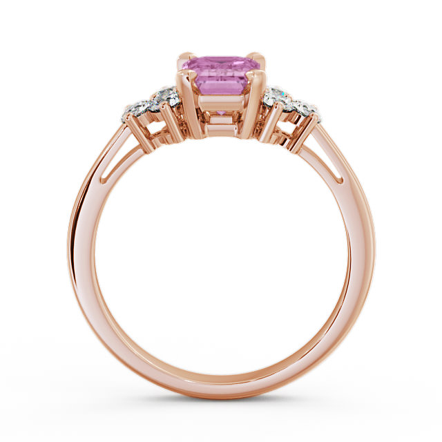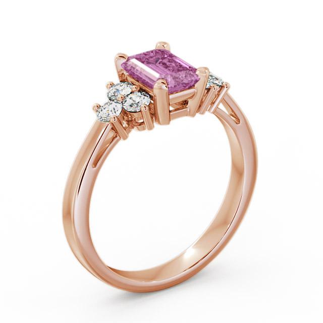 Melina pink sapphire and diamond 1.51ct ring in a 18K Rose Gold setting. Truly refined, this gemstone and diamond ring showcases 1.15 Carat emerald shaped pink sapphire centre stone complemented by six sparkling round diamonds with a 0.36 Carat total weight. This ring is available in a range of metal options with AAA grade gemstone. We offer a free design service for any customised changes that you may require.