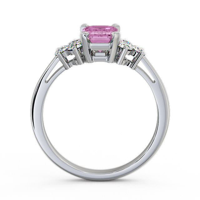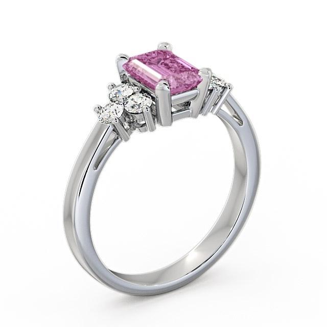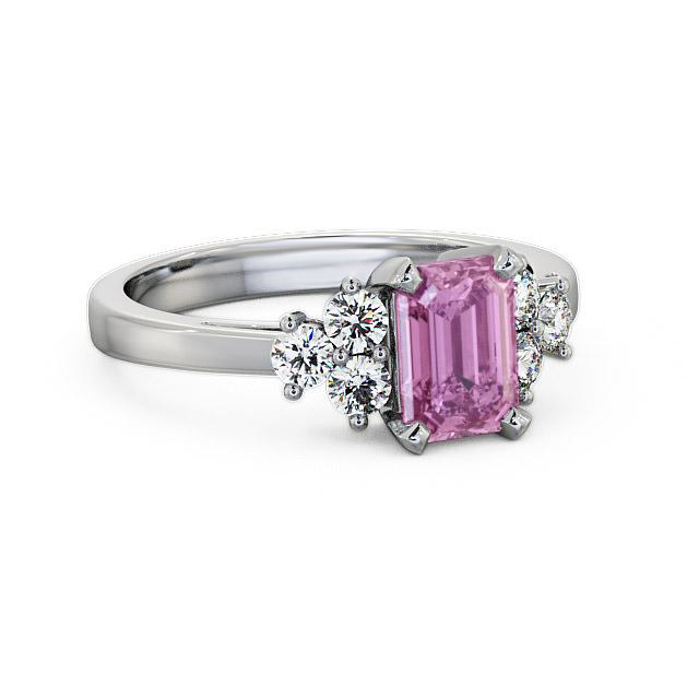 Melina pink sapphire and diamond 1.51ct ring in a Palladium setting. Truly refined, this gemstone and diamond ring showcases 1.15 Carat emerald shaped pink sapphire centre stone complemented by six sparkling round diamonds with a 0.36 Carat total weight. This ring is available in a range of metal options with AAA grade gemstone. We offer a free design service for any customised changes that you may require.