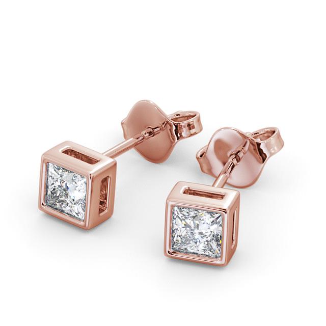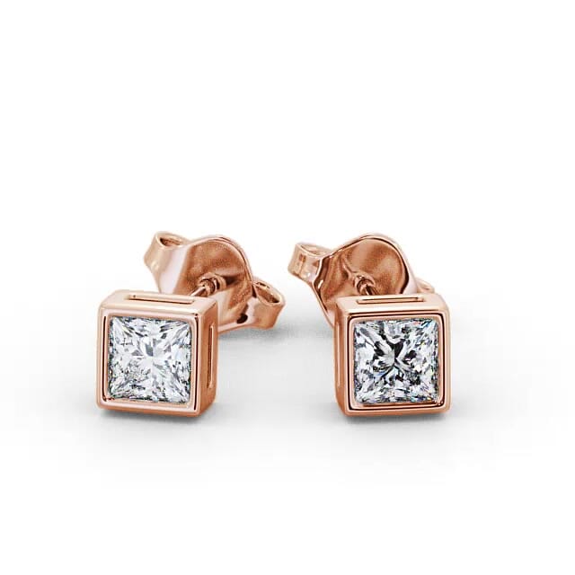 Princess Diamond Bezel Stud Earrings 18K Rose Gold | Annsley