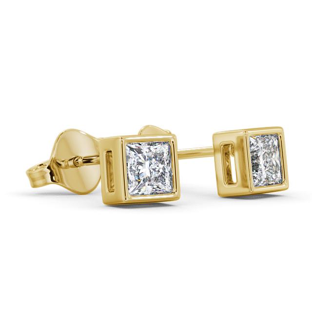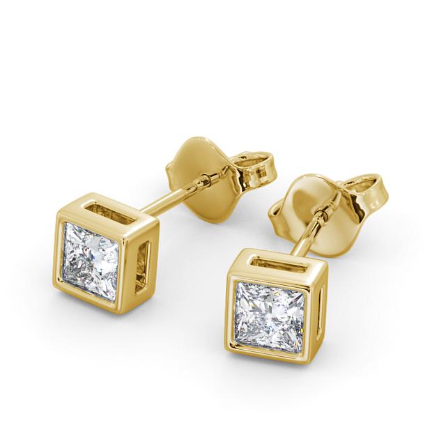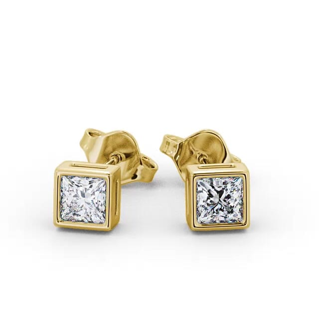 Princess Diamond Bezel Stud Earrings 9K Yellow Gold | Annsley