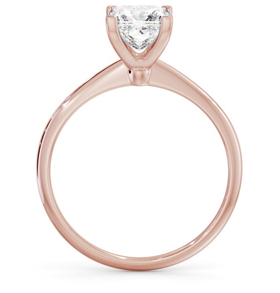 Cambrie diamond engagement ring with a four claw 18K Rose Gold setting. Magnificent enough to stand alone, a single princess shaped diamond is placed in the centre of this alluring engagement ring with a mid band width of 3.8mm. This ring is available in a range of metal options and your choice of natural or lab grown diamonds. We offer a free design service for any customised changes that you may require.