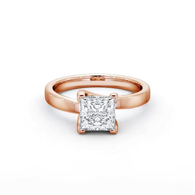 Halima diamond engagement ring with a four claw 18K Rose Gold setting. Classic and everlasting, this engagement ring radiates sparkling glow with a single princess shaped diamond set in a four prong setting with a mid band width of 2mm. This ring is available in a range of metal options and your choice of natural or lab grown diamonds. We offer a free design service for any customised changes that you may require.