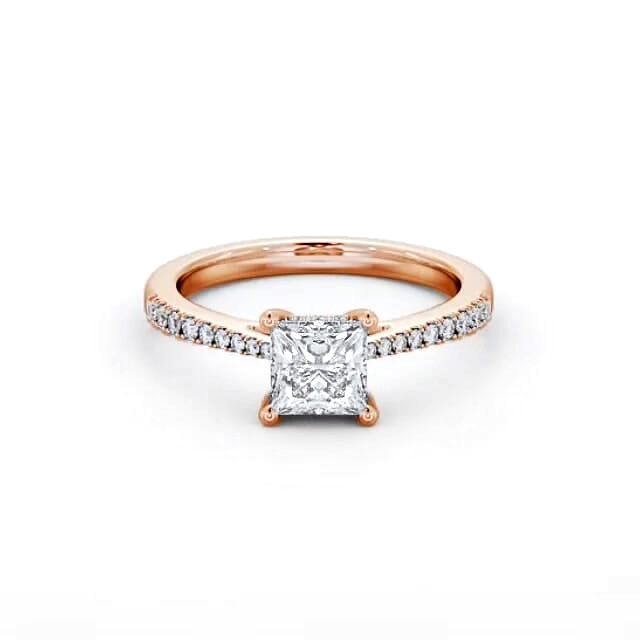 Princess Ring 18K Rose Gold Solitaire and Diamond Set Rail | Delila