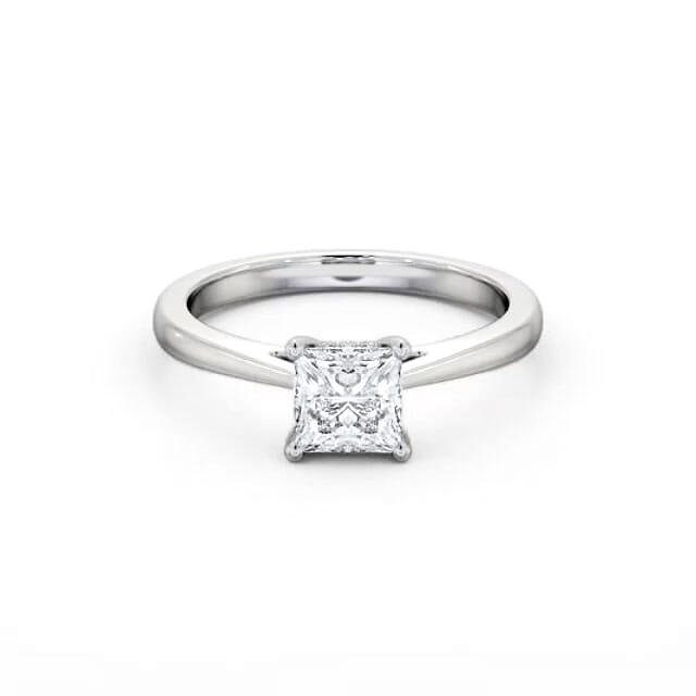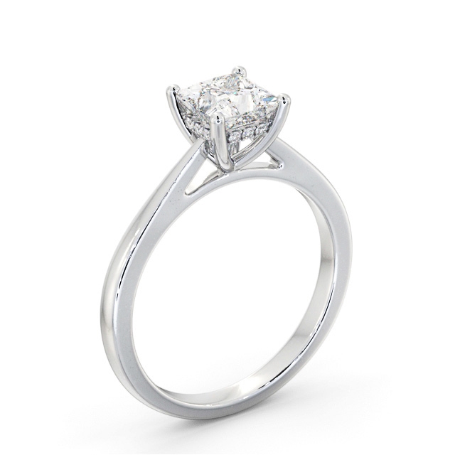 Princess Ring with Diamond Set Rail 18K White Gold Solitaire | Anari