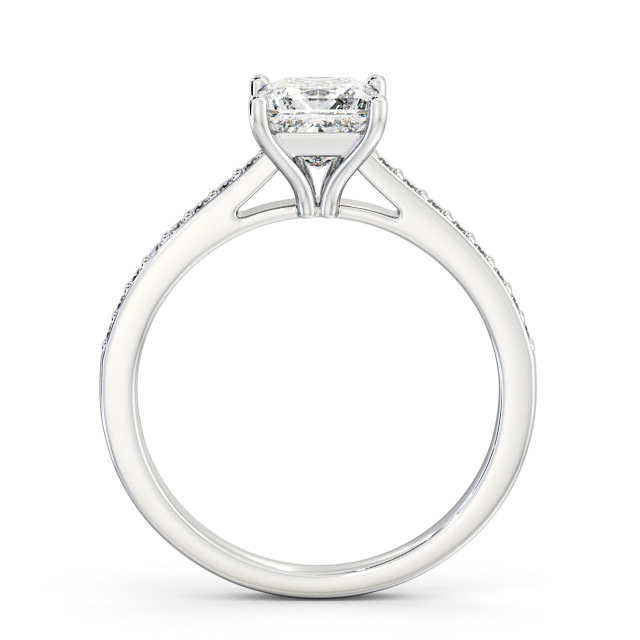Bexleigh diamond engagement ring with a four claw 18K White Gold setting. Stylish and chic in its own unique way, this classy ring with a large princess shaped diamond at the centre and small round diamond accented band. Total diamond side stones weigh approximately 0.15ct with Clarity VS1 and Colour F. This ring is available in a range of metal options and your choice of natural or lab grown diamonds. We offer a free design service for any customised changes that you may require.