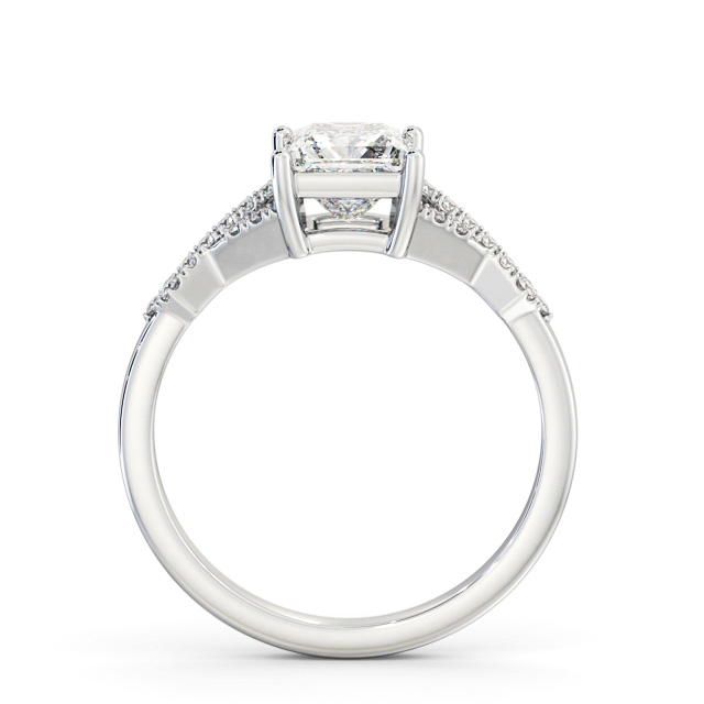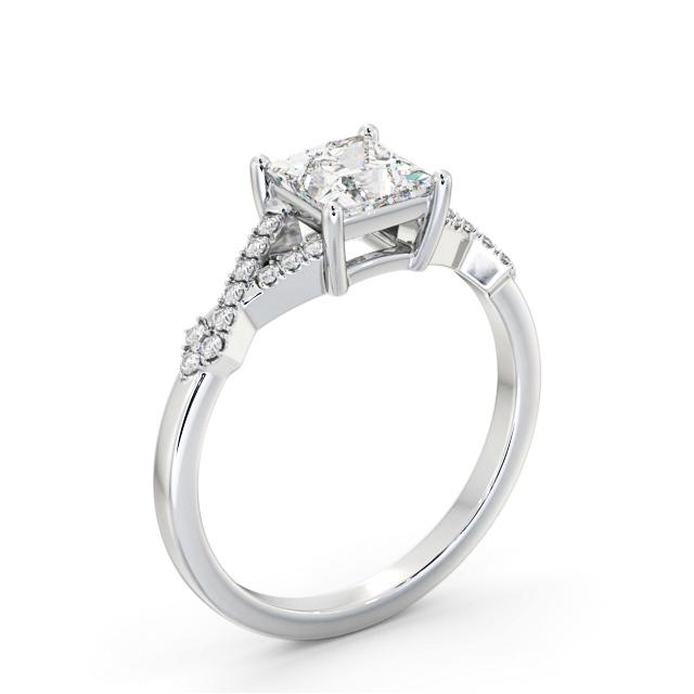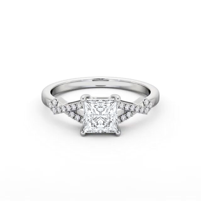 Raylen diamond engagement ring with a four claw 18K White Gold setting. Charming and elegant, a gorgeous four prong set princess shaped centre diamond is complemented by a small round diamond accented V-shaped patterns on each side of the band. Total diamond side stones weigh approximately 0.14ct with Clarity VS1 and Colour F. This ring is available in a range of metal options and your choice of natural or lab grown diamonds. We offer a free design service for any customised changes that you may require.