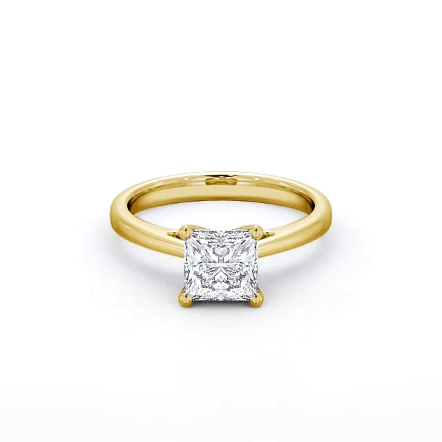 Charolette diamond engagement ring with a four claw 18K Yellow Gold setting. Featuring a princess shaped diamond high set amidst four prongs, this solitaire engagement ring is simply elegant. With a mid band width of 2.2mm, this ring is available in a range of metal options and your choice of natural or lab grown diamonds. We offer a free design service for any customised changes that you may require.
