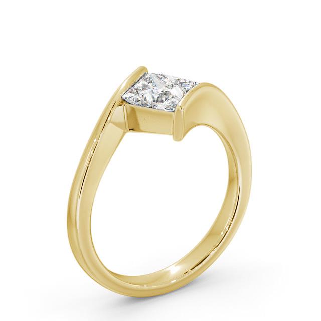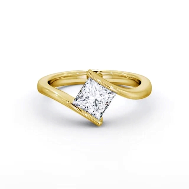 Rylan diamond engagement ring with a tension 18K Yellow Gold setting. Flawless styling, this engagement ring cradles a princess shaped diamond set in a highly polished bypass style ring with a mid band width of 2mm. This ring is available in a range of metal options and your choice of natural or lab grown diamonds. We offer a free design service for any customised changes that you may require.