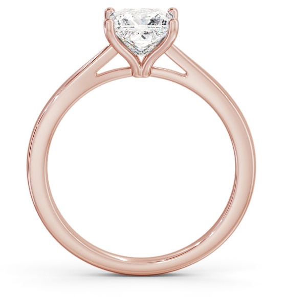 Tayah diamond engagement ring with a four claw 9K Rose Gold setting. Unique and elegant, this engagement ring features a princess shaped diamond solitaire in a sweeping four prong setting. With a mid band width of 2.2mm, this ring is available in a range of metal options and your choice of natural or lab grown diamonds. We offer a free design service for any customised changes that you may require.