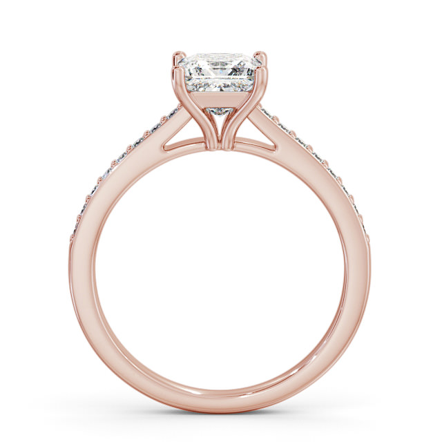 Bexleigh diamond engagement ring with a four claw 9K Rose Gold setting. Stylish and chic in its own unique way, this classy ring with a large princess shaped diamond at the centre and small round diamond accented band. Total diamond side stones weigh approximately 0.15ct with Clarity VS1 and Colour F. This ring is available in a range of metal options and your choice of natural or lab grown diamonds. We offer a free design service for any customised changes that you may require.
