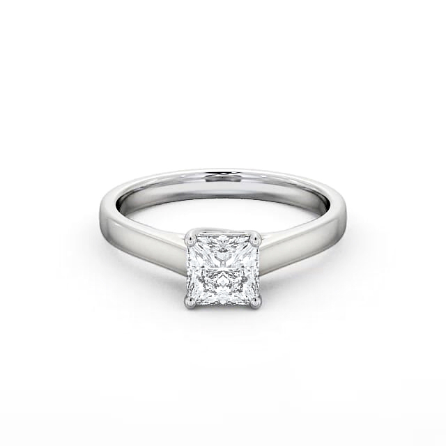 Reema diamond engagement ring with a four claw 9K White Gold setting. Phenomenally brilliant, this solitaire ring holds a princess shaped diamond set in a four claw setting with a mid band width of 2.3mm. This ring is available in a range of metal options and your choice of natural or lab grown diamonds. We offer a free design service for any customised changes that you may require.
