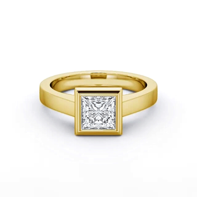 Princess Diamond Bezel Engagement Ring 9K Yellow Gold Solitaire | Angely