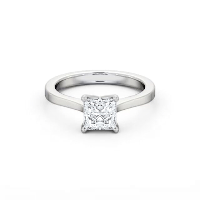 Hallie diamond engagement ring with a four claw Palladium setting. This glamourous ring is adorned with a gorgeous princess shaped diamond claw set into a brightly polished band. This ring is available in a range of metal options and your choice of natural or lab grown diamonds. We offer a free design service for any customised changes that you may require.