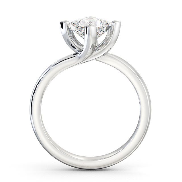 Magali diamond engagement ring with a twisted four claw Palladium setting. This exquisite yet classic solitaire ring features a sweeping V-tipped four-prong design holding a princess shaped diamond. With a mid band width of 2mm, this ring is available in a range of metal options and your choice of natural or lab grown diamonds. We offer a free design service for any customised changes that you may require.