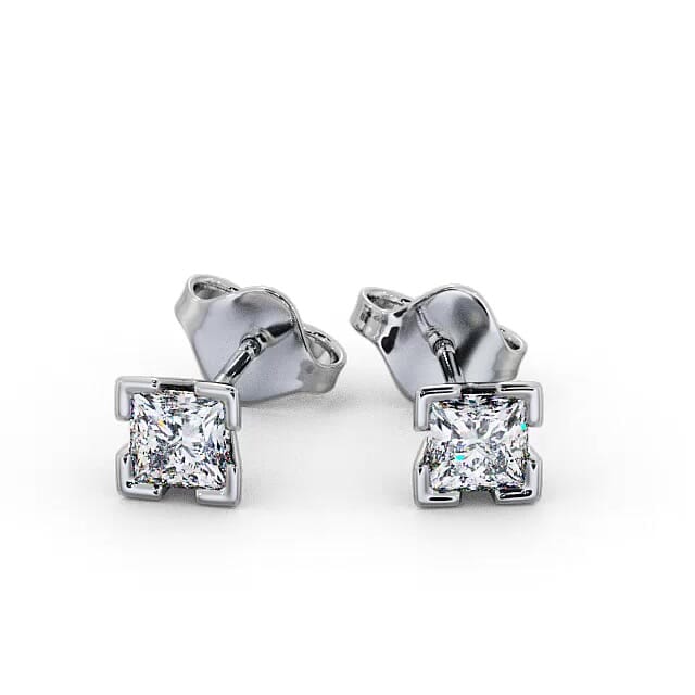 Princess Diamond Split Bezel Stud Earrings 18K White Gold | Dayla